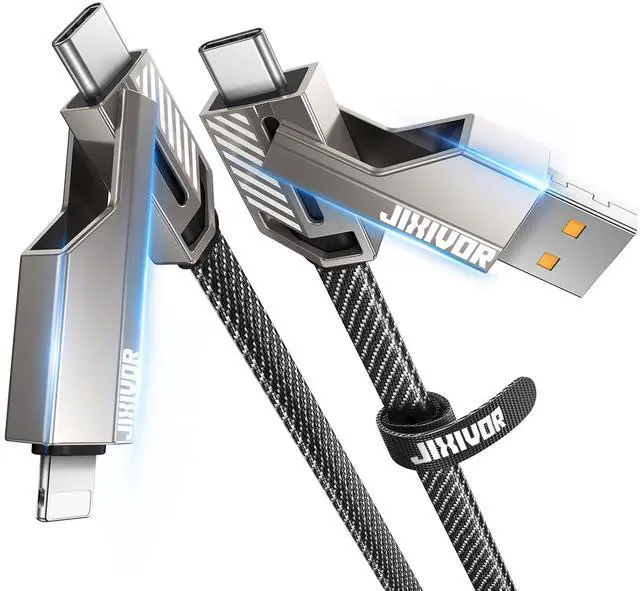 65W Fast Charging & 480mbp/s Data Transfer: 4-in-1 USB cable offers high-speed and safe charging max to 65W, enabling faster charging compared to standard cables. It can charge a Samsung S24 Ultra phone to 80% in 30 minutes (actual speed depends on your device and charger). The cable supports data transfer at 40-60MB/s, allowing a 1GB file transfer in 20 seconds. Compatible with iPhone, Samsung, tablets, Air, Mini, Pro, MacBook, and more, this cable saves time and enhances efficiency