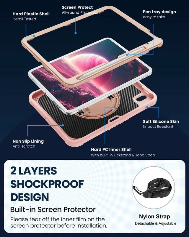 Portable Shoulder StrapThe adjustable shoulder strap provides the secureest protection and more convenience when you play or work with iPad A16/iPad 11th generation/iPad 10th generation. Hang it anywhere for your better entertai