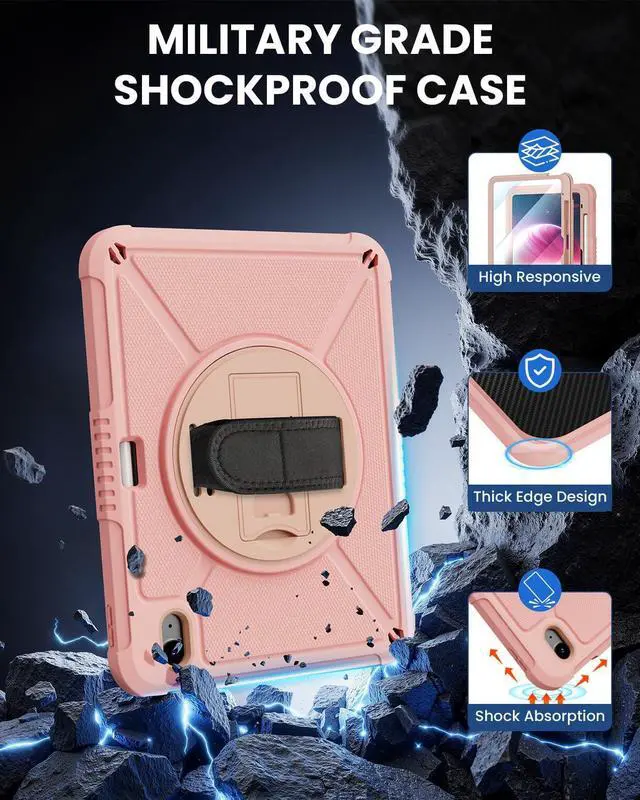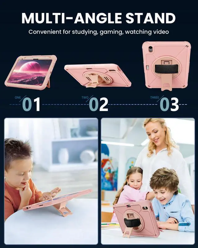 Rotating Stand + Hand Strap360° Rotating Kickstand provides multi-angle viewing, with soft handle strap, easier to hold and use your tablet in your outdoor travelling, working, gaming with kids.