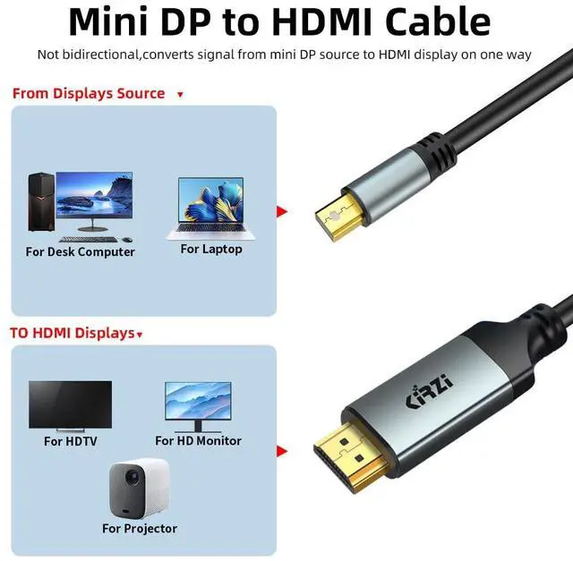 Kirzi 4K Active Mini DisplayPort to HDMI Cable 6ft [4K 60Hz, Aluminum Shell] UHD Thunderbolt to HDMI Cable, Mini DP to HDMI, Compatible for MacBook Air/Pro, Surface Pro, iMac Series, XPS