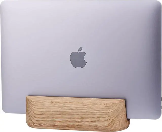 TheHrdwoodCom Laptop Stand Vertical Laptop Holder for Desk - All MacBook Vertical Stand up to 0.7 '' Thick - Handmade MacBook Holder of Natural Wood (Single Oak)