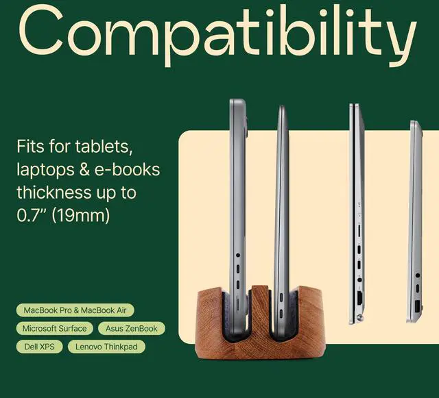 VENTILATION AND HEAT DISSIPATION: the vertical design promotes better airflow for cooling, ensuring your laptop doesn't overheat even during extended sessions. The wood material does not obstruct Wi-Fi or Bluetooth signals, keeping your connections stable while you work