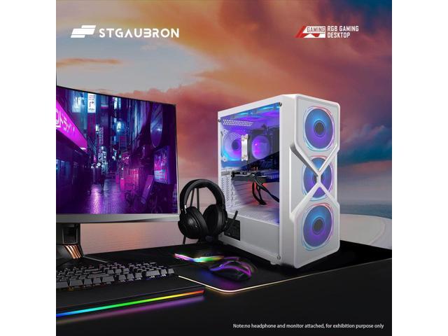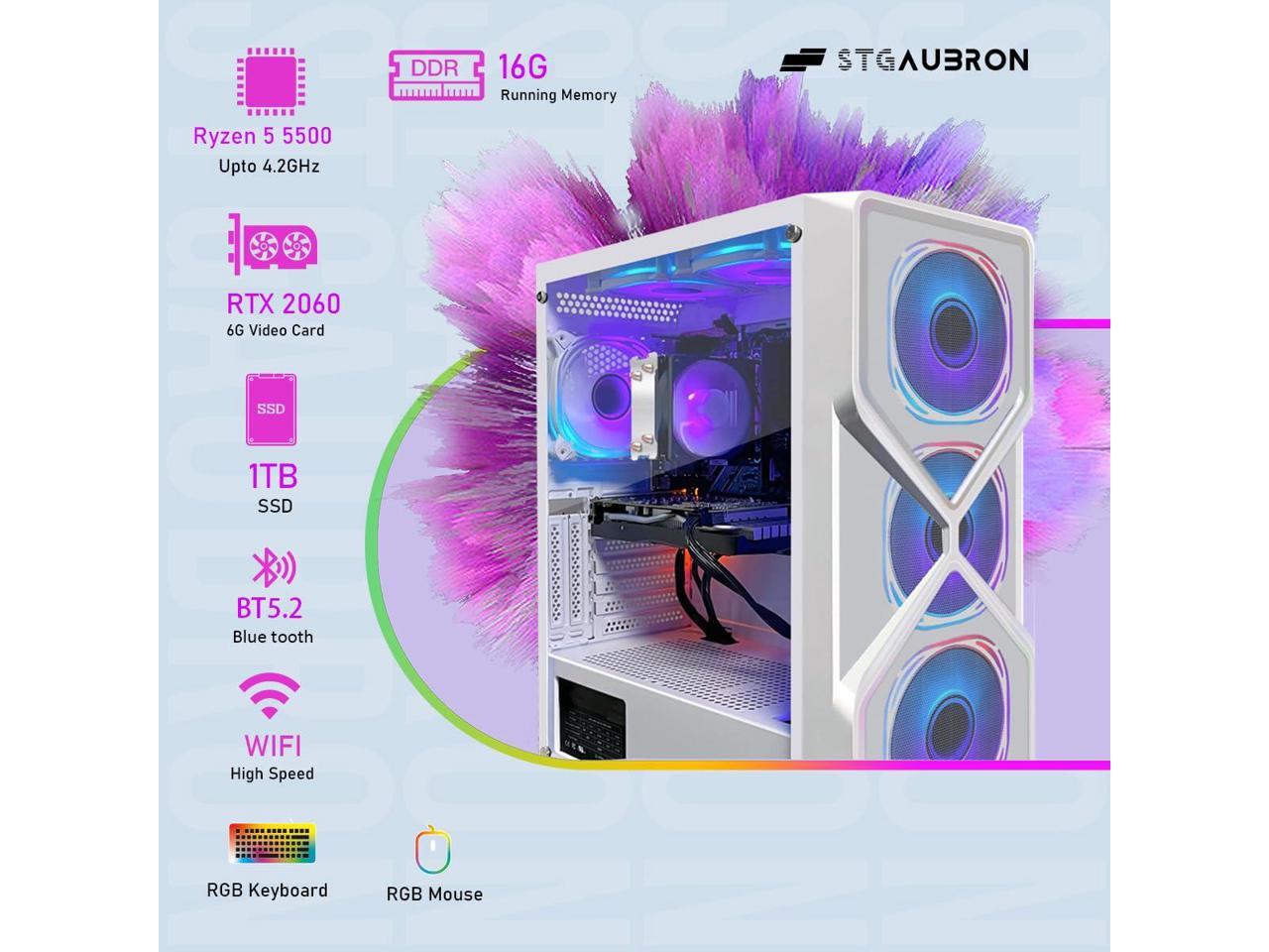 STGAubron Gaming PC Computer Desktop,AMD Ryzen 5 5500 up to 4.2GHz, GeForce RTX 2060 6G,16G DDR4, 1T SSD, WiFi 6 5G & BT 5.2, RGB Fan x6, Windows 11 Home,White