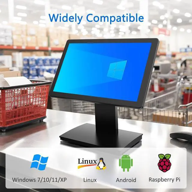 Connect & GoThe NewHail touchscreen monitor features a seamless integration design that easily connects to a desktop PC, laptop, or mini computer, offering effortless compatibility with your existing setup. Unlike consumer-grade monitors intended for occasional use, its seamless construction enhances resistance to water and dust, ensuring durability and reliability across various commercial environments. (Note that this POS screen does not come with a built-in operating system, giving you the flexibility to pair it with your own device.)
