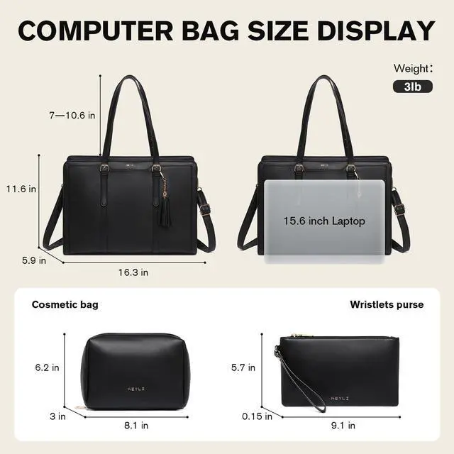 Large CapacityThe laptop bag for women has an independent laptop compartment fits under 15.6 inch laptop and Ipad/tablet, A large main pocket specially designed for documents, books, gadgets. A middle opening pocket and a middle zipper pocket can store all your personal belongings.