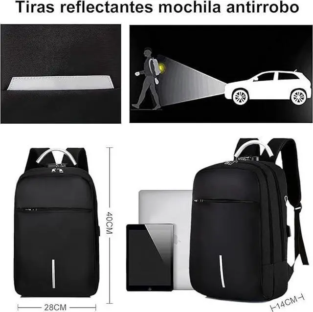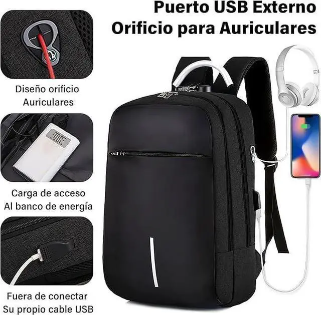 The Anti-Theft Laptop Backpack is the perfect solution for those looking to combine security, functionality and style in one accessory. Ideal for travelers, students and professionals, this backpack is constructed with high quality and strength materials, ensuring the durability and protection of your most valuable belongings. Its anti-theft design includes hidden zippers and cut-resistant materials, offering effective defense against theft and unauthorized access. With a special compartment for laptops up to 15.6 inches, your device will always be safe and well protected thanks to the extra shock absorbing padding. Plus, it features multiple organizer compartments that allow you to keep your books, gadgets, accessories, and documents in order and easily accessible.