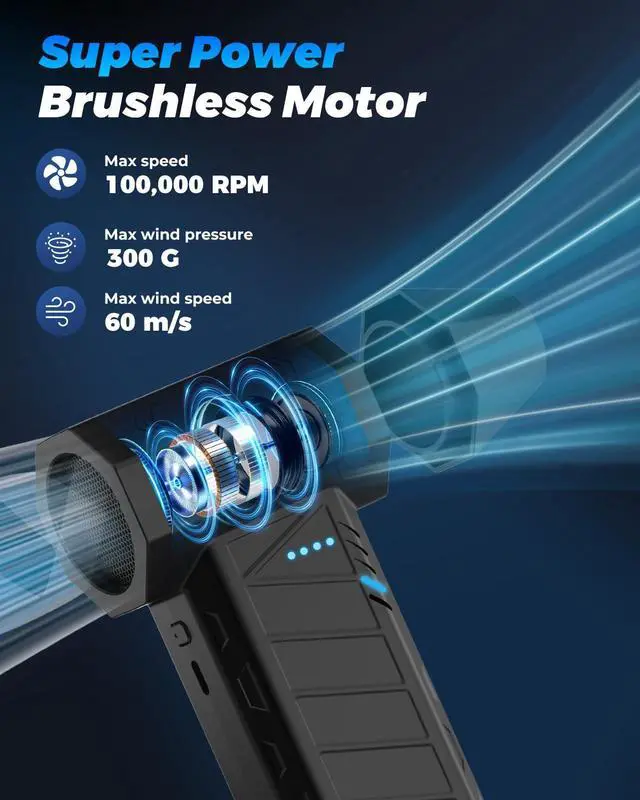 Compressed Air Duster Sandrem CL02 MAX Electric Air Duster features a 100,000 RPM brushless motor, delivering 300 G of blowing force and a maximum air speed of 60 m/s. It features 4 adjustable speed settings to meet diverse cleaning needs, easily removing dirt and debris hidden in crevices.