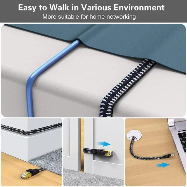 HiiPeak Cat8 Flat Ethernet Cable is covered by nylon which offers excellent performance of abrasion resistance. Nylon braided provides smooth, soft, slick surface resisting snags when dragged over a rough surface. Especially the cable hidden under the carpet where is often rubbed.