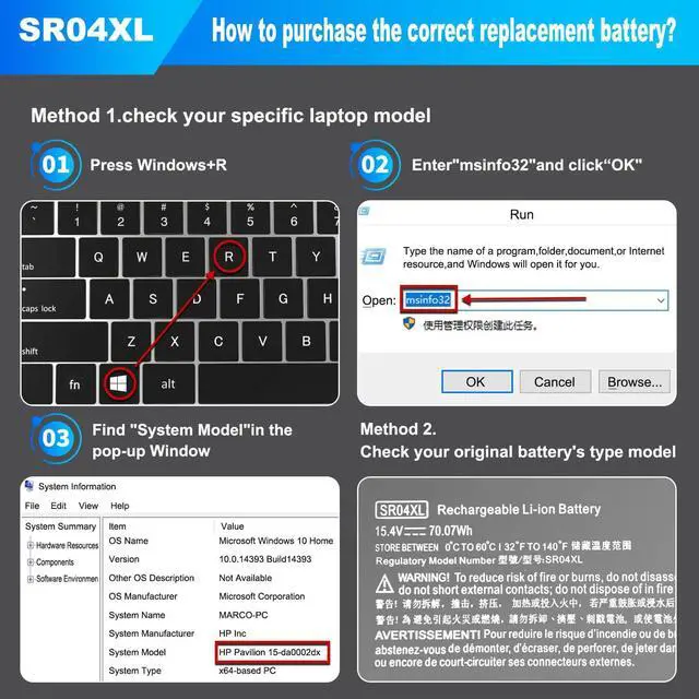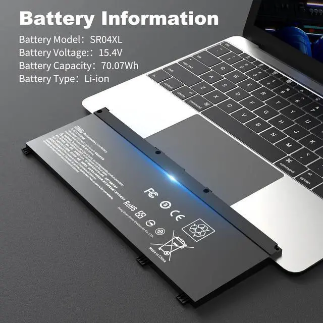 • Basic Details:Item Model:SR04XL;Voltage:15.4V;Capacity:70.07Wh;Battery Type:Li-ion;Battery Color:Black