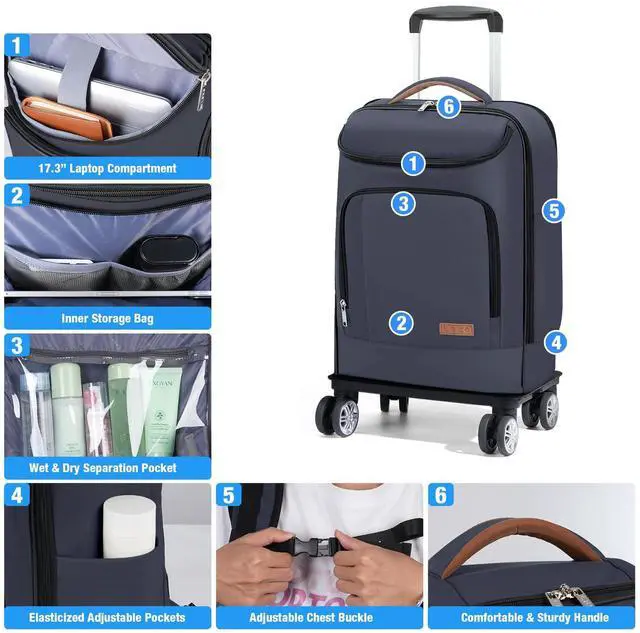 [2025 New Upgraded Version]-Lekebobor rolling backpack has been designed with functionality and comfort in mind. In order to make it more ergonomic, we have extended the length of the handle and added 360° wheels to make it easier and more convenient for your daily travels, making it an indispensable travel companion!