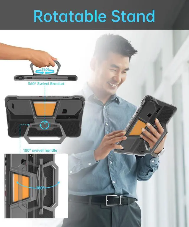 360°Rotating Stand + Soft Back Case 360°rotating tablet stand case provides different typing & viewing angles for studying, gaming, watching video; Meanwhile, the clear back cover not only provides protection, but also does not affect the color of your tablet itself, so you can use this tablet case holder indoors or outdoors with confidence