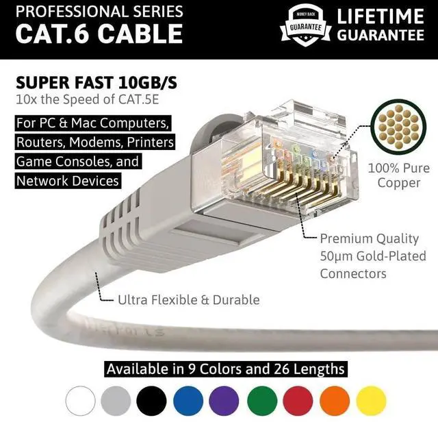 Extraordinary Performance With speeds of up to 10 Gpbs, Our high bandwidth 550 MHz Cat6 Ethernet cables provide a high-speed, fast data transfer for server applications, cloud storage, video chatting, online high definition video streaming and more.
