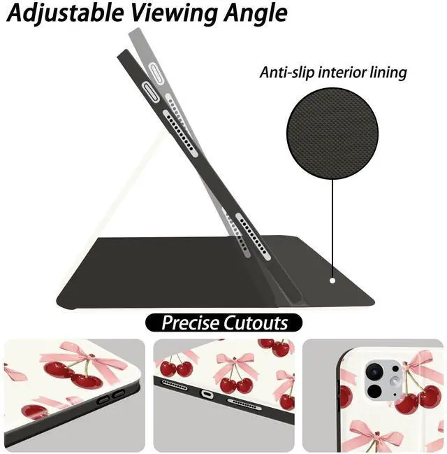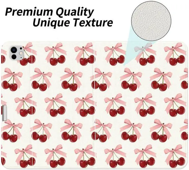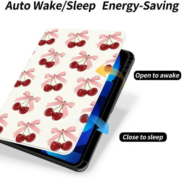 This cute cherry case with pencil holder designed for iPad 2021/2020/2019, iPad 9th/7th/8th Generation, 10.2 Inch.