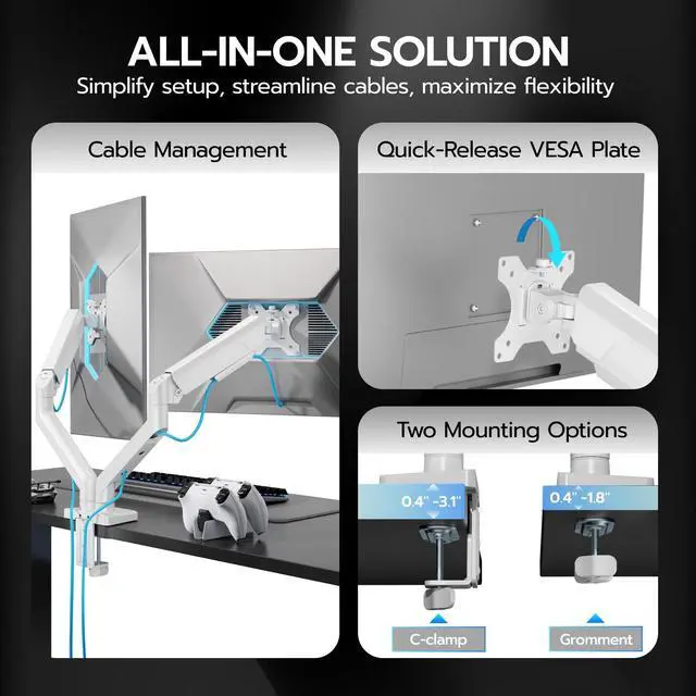 Boasting a Heavy Duty construction, this Dual Monitor Mount supports up to 24.2 lbs and accommodates 35 inch Ultrawide Screen and Curved Screen displays. Whether youre gaming with a immersive curved monitor or tackling projects on a large ultrawide screen, this mount delivers reliable support you can trust.