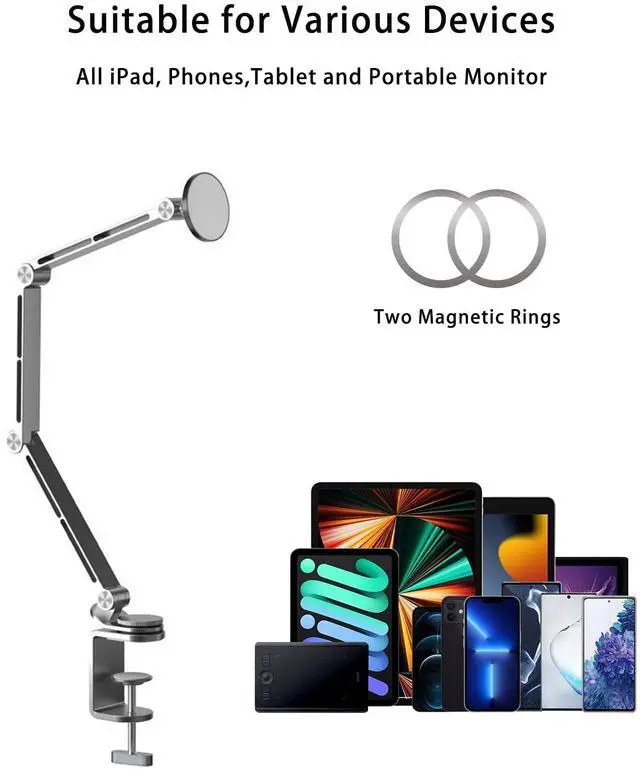 Powerful Magnetic Hold Strong built-in magnets ensure a secure grip. With the included metal ring, your tablet or small monitor locks in place instantlyquick to attach, easy to release, and reliably stable.