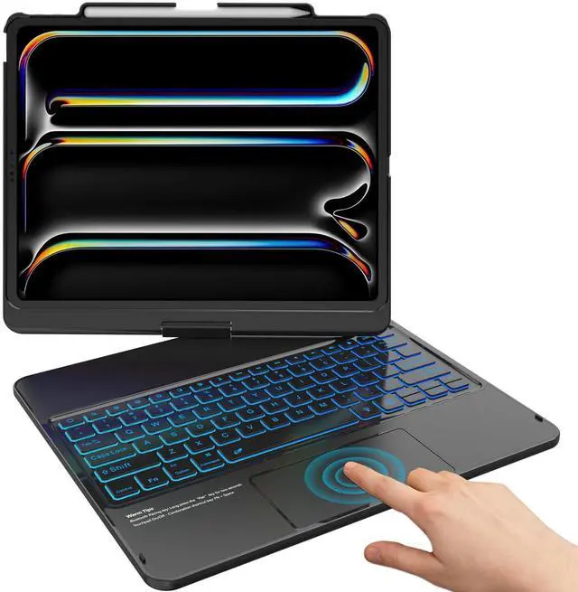 TQQ Keyboard Case for iPad Pro 13-inch (M4) 2024 - 360° Rotatable, 7-Color Backlight, Multi-Touch Trackpad, Thin & Light