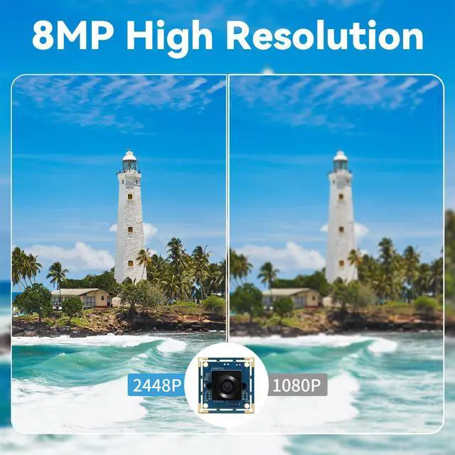 8MP High ResolutionThe webcam features an 8MP sensor with a maximum resolution of 3264(H) × 2448(V) at 15 frames per second, delivering sharp images and clear video quality.