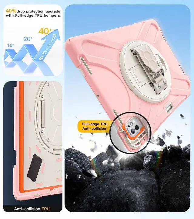[Full Body Protection &Kids Friendly]:This case for ipad pro 13 inch M5 2025 & M4 2024 features triple-layer construction and extra orange TPU cushioning strips, the outer silicone layer reinforces the dropproof performance of all four corners, plus there are 4x shockproof sponge pads on the bottom cover to prevent scratches to your tablet.Provides the ultimate in protection and durability, safe for kids to use.