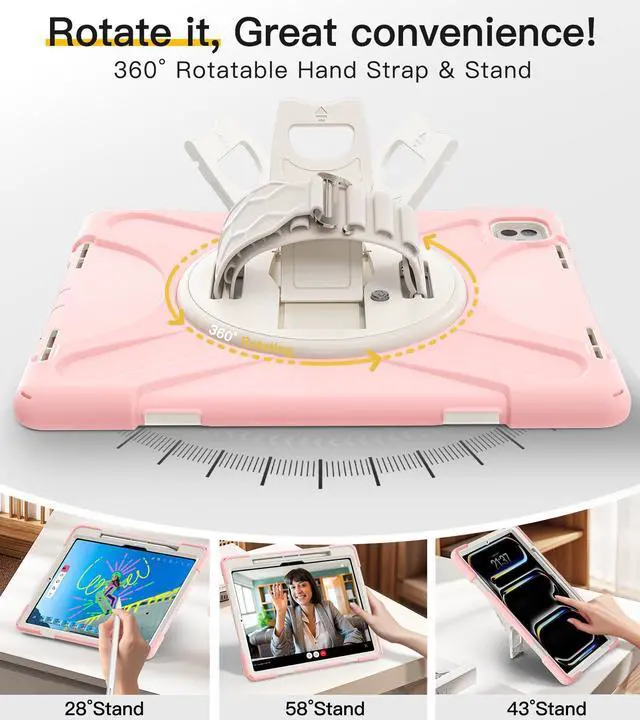 [360°Rotating Anti-Slip Hand Strap & Stand with One-Touch Retract Button]With the rotating system as well as kickstand and Silicone handle, it makes this multi-functional case that you can use i
