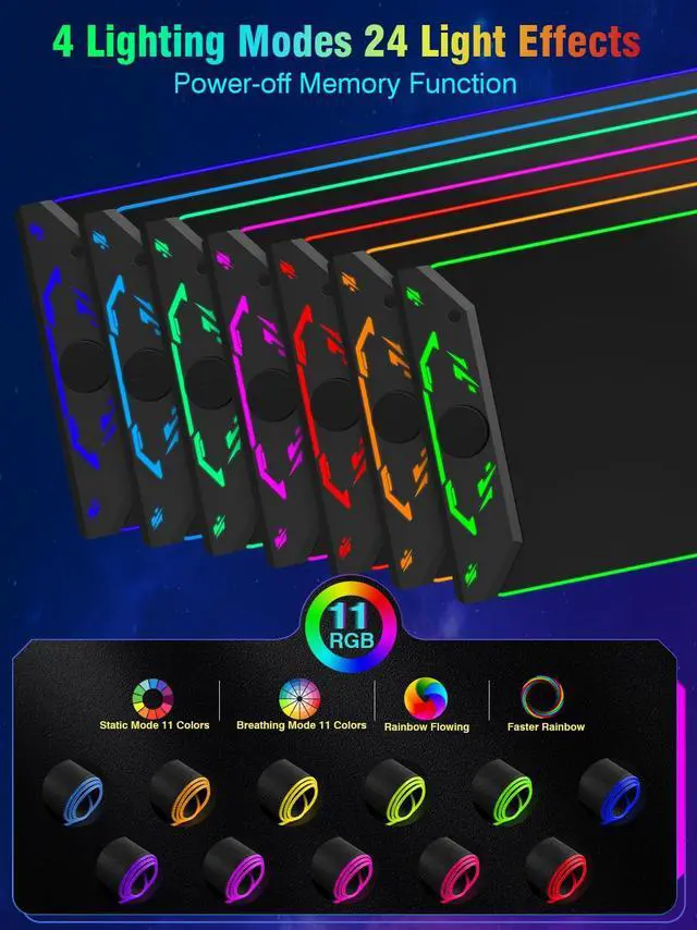 24 RGB Light Spectacle & Memory Function Choose from 11 static colors, 11 breathing effects, rainbow waves, or fast rainbow mode; Power-off memory saves your favorite lightingno need to reset every time!