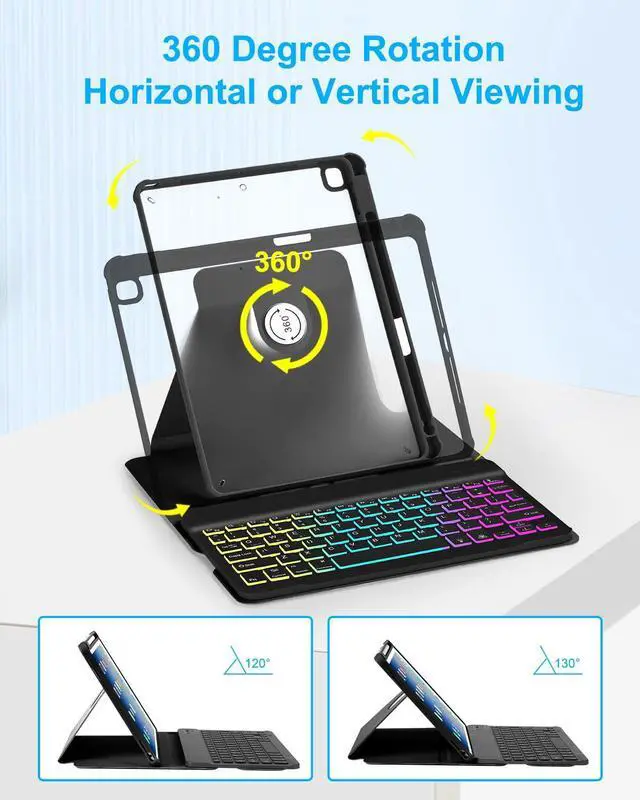 EAMPANG Case with Keyboard Mouse for iPad 9th 8th 7th Generation 10.2 inch, 7 Rainbow Backlit Detachable Wireless Keypad Rotatable Magnetic Cover with Pencil Holder for iPad Air 3rd Gen/Pro 10.5 Black