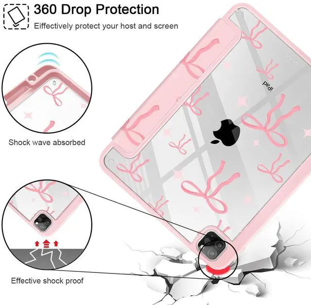 May Chen for iPad Pro 11 inch M2 4th Generation 2022, iPad Pro 11 3rd/2nd/1st Gen, Case with Transparent Shockproof Back Cover [Built-in Pencil Holder, Auto Sleep/Wake, Pink Bows P721