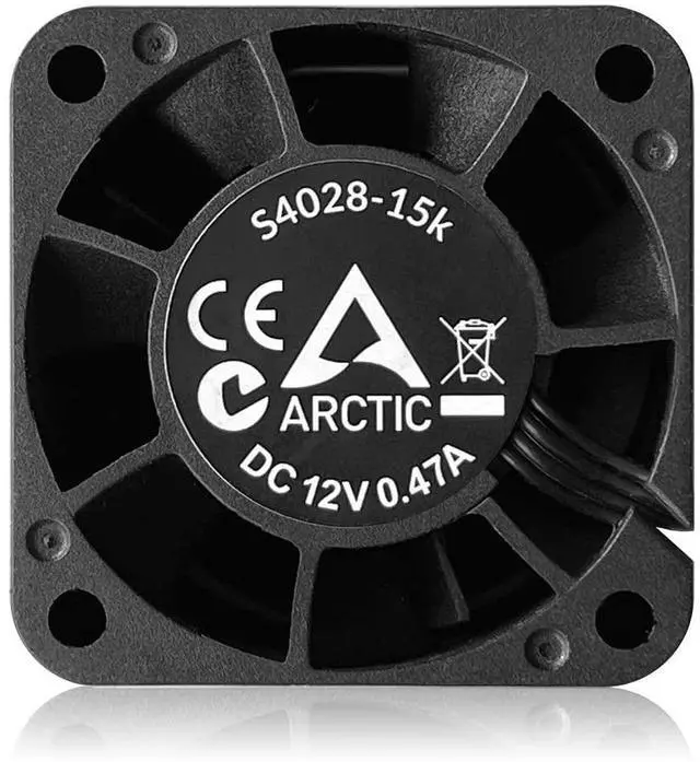The S4028-15K has a particularly wide speed range that can be regulated via PWM and voltage. With its 15000 max RPM it is one of the strongest 12 V fans with a 40 mm diameter