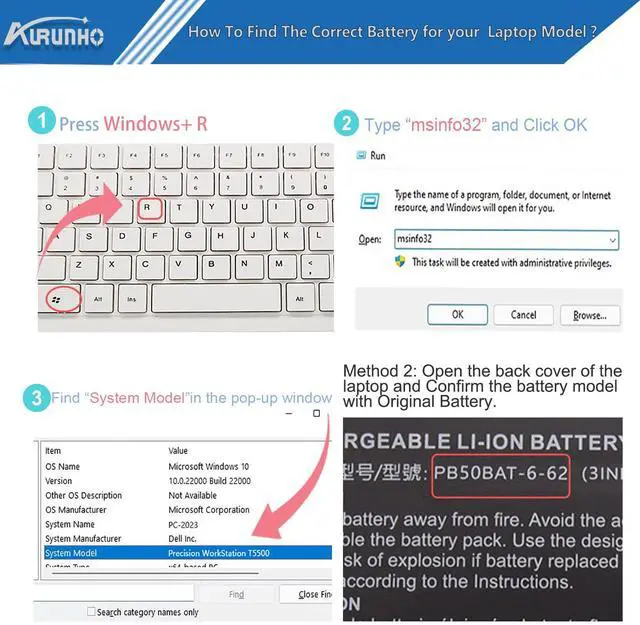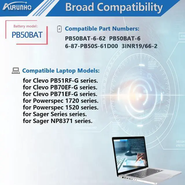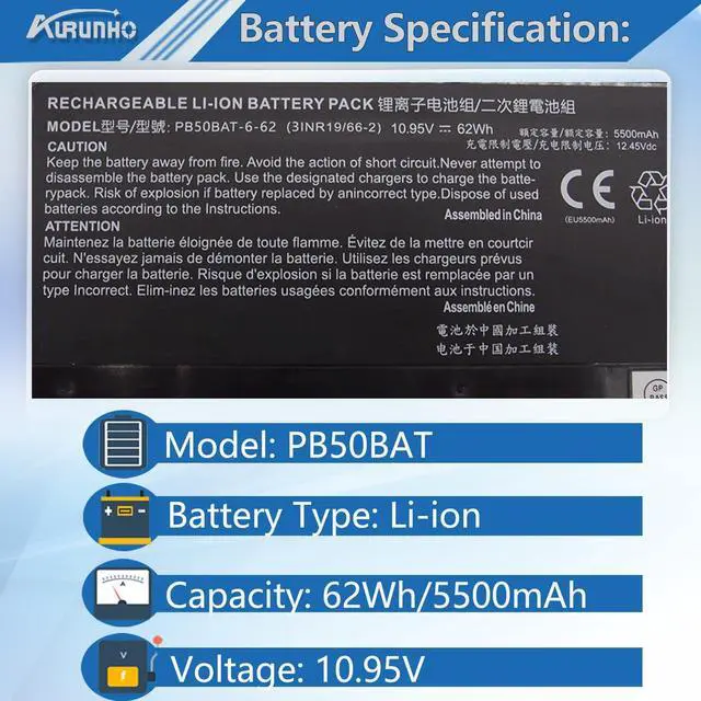 AURUNHO PB50BAT-6-62 Laptop Battery for PB50BAT-6 Clevo PB51RF-G PB70EF-G PB71EF-G Series 10.95V 62Wh 5500mAh