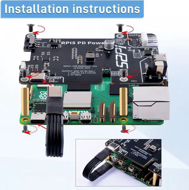 GeeekPi PD Power Expansion Board for Raspberry Pi 5 8GB 4GB, with Always-ON Switch, Automatic Startup and Manual Power Control Function