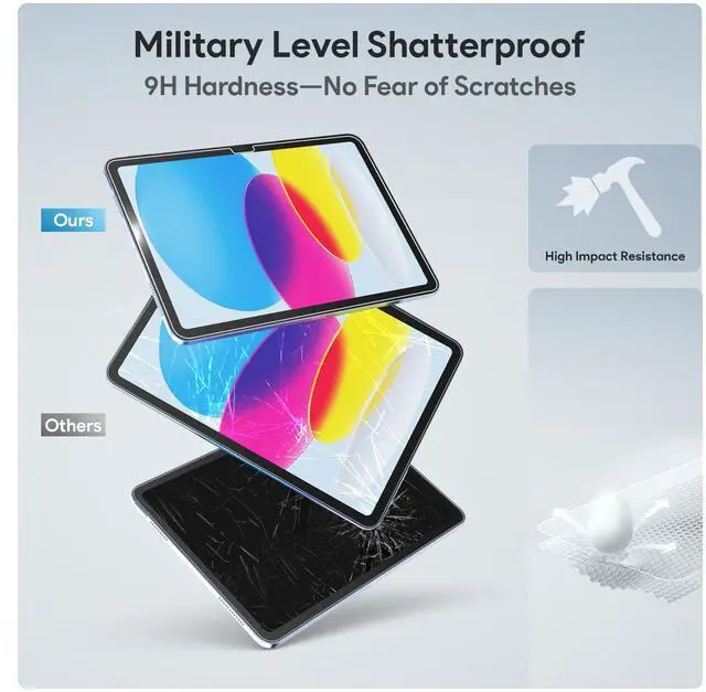Powerful Protection: Constructed with 9H hardness glass, the iPad 10th generation screen protector features a robust and durable structure that effectively withstands accidental drop