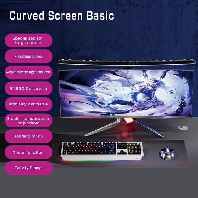 Immersive Curved Display Lighting (24-27 Inch) Immersive Curved Display Lighting (24-27 Inch) Specifically designed for large curved monitors, this light bar perfectly complements your 24 to 27-inch screen. Experience unrivaled visual immersion and a truly realistic gaming and viewing experience, drawing you deeper into the action.