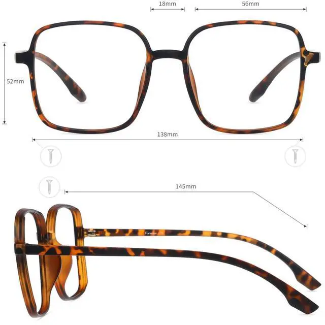 PRODUCT DIMENSIONS - Large Glasses: Weight: 10g, Frame Width: 56mm(2.2in), Frame Height: 52mm(2.05in), Temple Length: 145mm(5.71in), Nose Bridge: 18mm(0.71in)