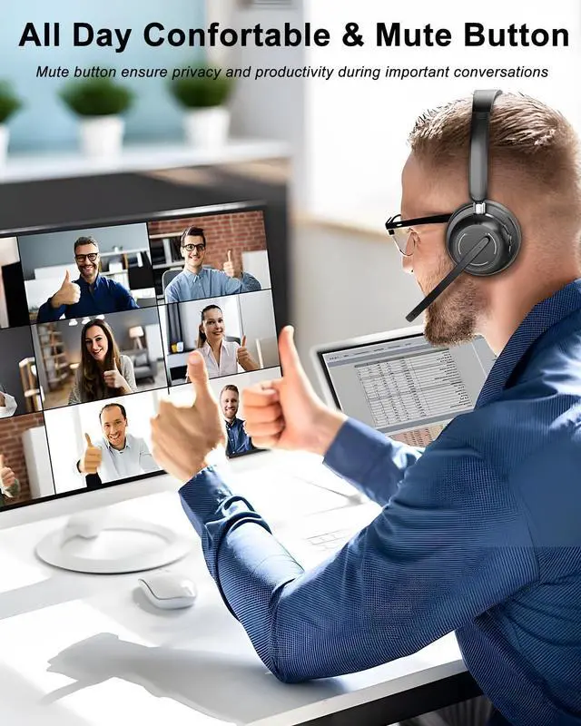 Noise Canceling & Mute Mic: Equipped with AI noise cancellation, BlueAir wireless headset with mic blocks background noise for crystal-clear callswithout distractions from pets or kids during crucial discussions! Ideal for remote work, online meetings, call centers, busy offices, or warehouses