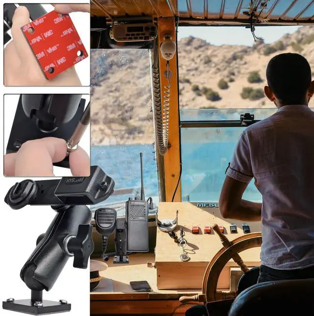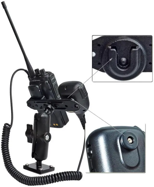 [Easy Installation] Low vibration 4 hole amps mounting pedestal attaches with screws to solid flat surfaces. The drill base system offers a versatile installation on vehicles (dashboard or console) and various flat surfaces like walls, desktops, counters, and production/customer areas, making it an excellent walkie talkie with belt clip wall mount.