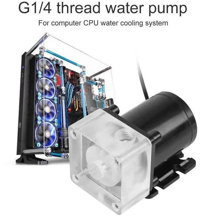 MULTIFUNCTIONAL WATER COOLING PUMPPc water cooling pump, G1/4 thread for computer CPU water cooling system, which is not only very quiet during , but also has an LED power indicator for indication when it is turned on.