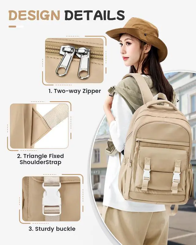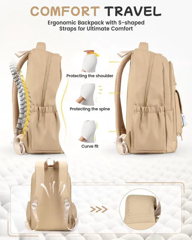 KEYEMP Travel Laptop Backpack for Women,Carry on Bags for Airplanes Men Work Cute Aesthetic Backpack,Large Casual Daypack College Personal item Bag,Khaki
