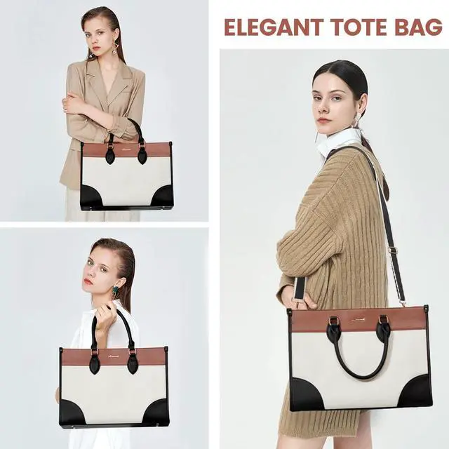 Elegant Laptop Tote Bag for Women: The Computer Handbag Shoulder Bag interior is thoughtfully designed with multiple compartments. The laptop pursue built-in padded laptop compartment fits up to a 17.3" laptop, featuring a thick protective foam pad and a secure velcro strap to ensure optimal protection for your device.