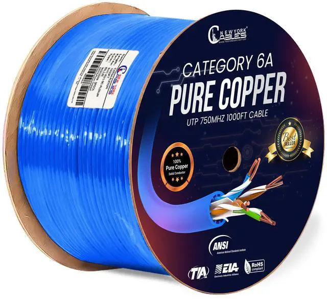 % : Enjoy uninterrupted and reliable connections with our Cat6a cable 1000ft. Made from certified 100% solid pure copper, the cat6a cable provides exceptional conductivity and minimizes signal loss, ensuring a stable and consistent network connection.