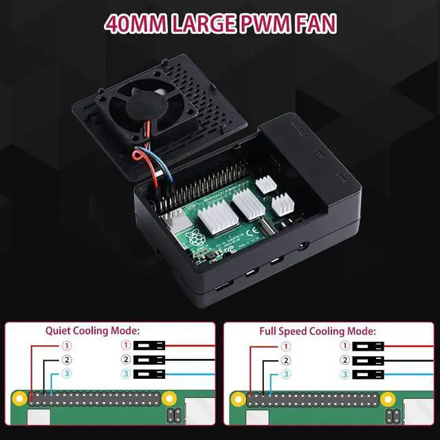 • This case contains a super quite 40mm PWM fan and 4pcs heatsinks for good heat dissipation of Pi 4B board.