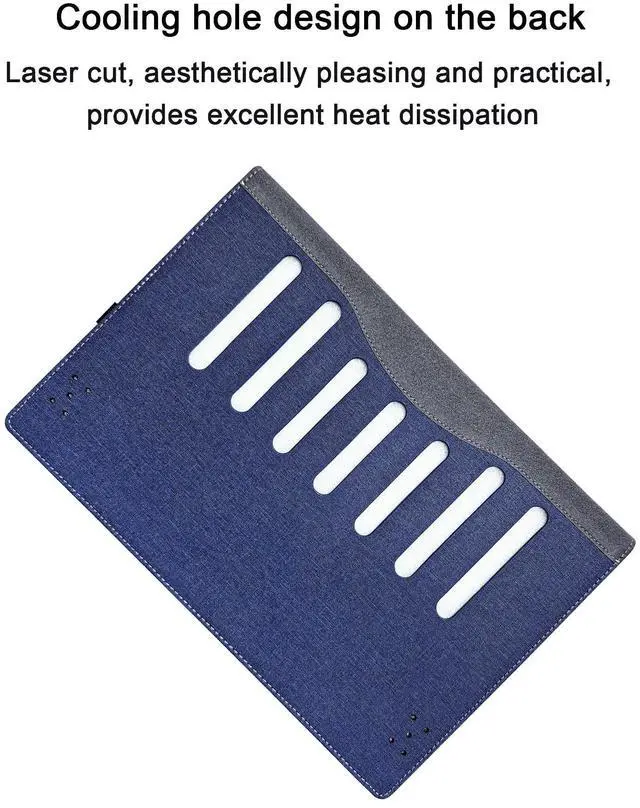 Heat dissipation: The back is designed with cooling holes to facilitate heat transfer and prevent overheating of the laptop. The side is designed with elastic bandages for storing the stylus. This product is only a protective cover and does not include the laptop and pen shown.