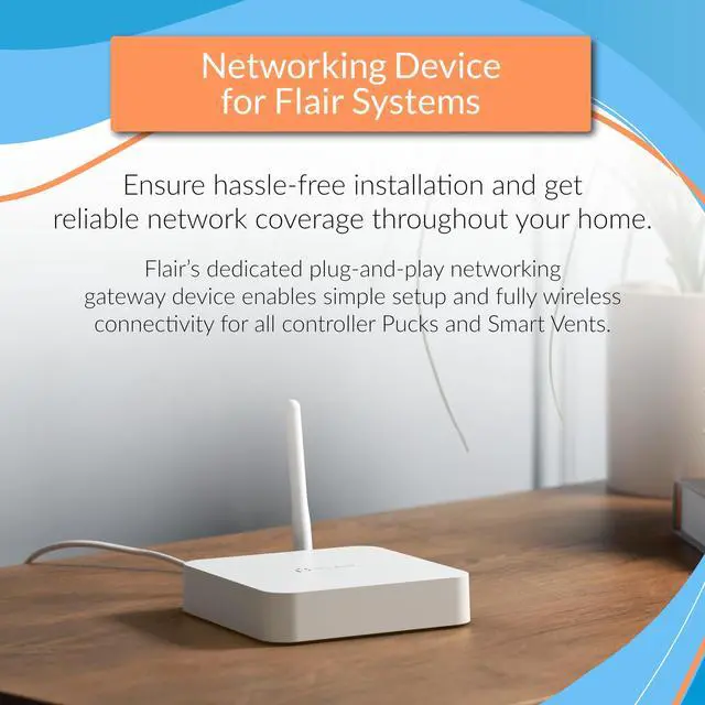WHAT IS IT? A dedicated plug-and-play networking gateway device for Flair systems, enabling simple setup and fully wireless connectivity for all controller Pucks and Smart Vents.
