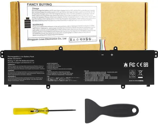 Specifications Model: B31N1911; Battery Type: Lithium polymer; Voltage: 11.55V; Capacity: 42Wh; Cells: 3 cells; Color: Black with One Free Screwdrivers for easy installation.