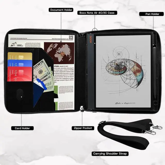 HANDHELD-BRIEFCASE DESIGNLet your Boox Note Air4 C case become a portable briefcase, protect your tablet from receiving damage, durable and extremely sturdy. And with the carrying shoulder strap, you could carry your Boox Note Air4 C conveniently when you are at work or outdoors.