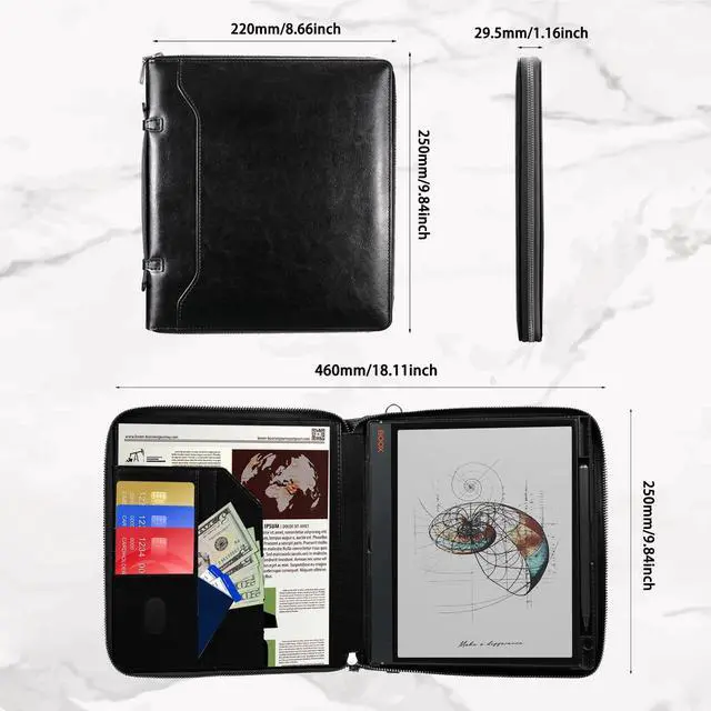 UNIQUE ZIPPER DESIGNOur Boox Note Air4 C cover is very suitable for all business elite. With the zipper pocket, you don't need to worry about the tablet falling out. The zippered folio is handmade by experienced craftsmen. Elegant never goes out of style handmade charm.