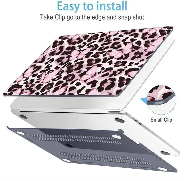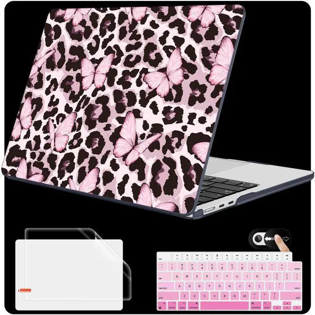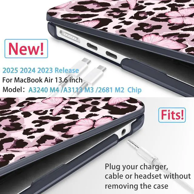 Mektron for 2025 M4 MacBook Air 13.6 Inch A3240 Case Fits 2023 A2681 M2 2024 A3113 M3 Chip with Liquid Retina Display Touch ID, Printed Plastic Hard Shell for MacBook Air 13.6", Leopard Pink Butterfly
