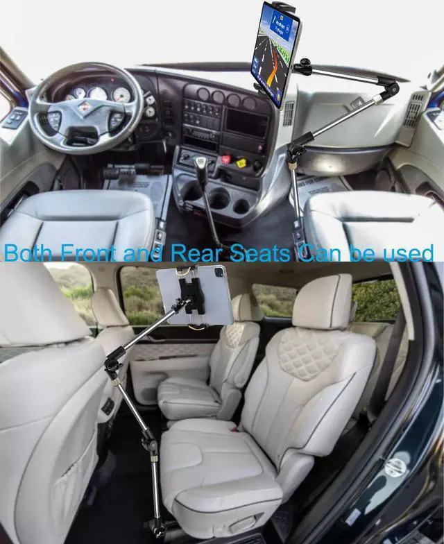 Broad compatibilityThis universal seat bolt tablet holder for car, the adjustable side clamps extend from 4.7 in to 10.2 in, compatible with all 4 - 13 inch smartphones and tablet