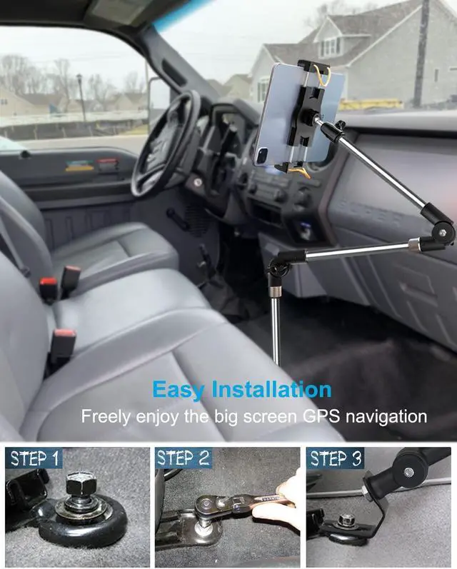 Suitable for Large VehiclesSteel coil 19.7 inch gooseneck firmly connected to most passenger seat rail bolts. Steel keeps the device firmly in place with low vibration while allowing it to be quickly and easily repositioned. This ultra-long metal arm makes it very suitable for use in large vehicles such as heavy duty truck, pickup truck, work truck, semi truck.