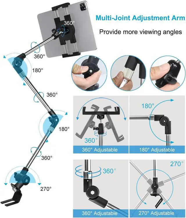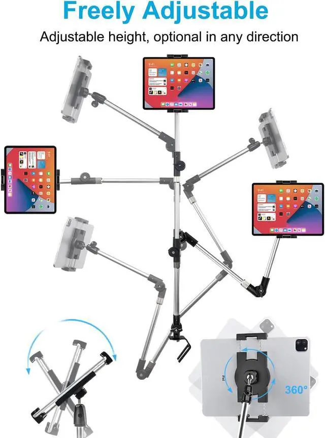 Freely rotate and adjust360 degree rotation tablet support holder, can provide the best viewing angle. Simply adjust your tablet and place it at any angle and position you desired.