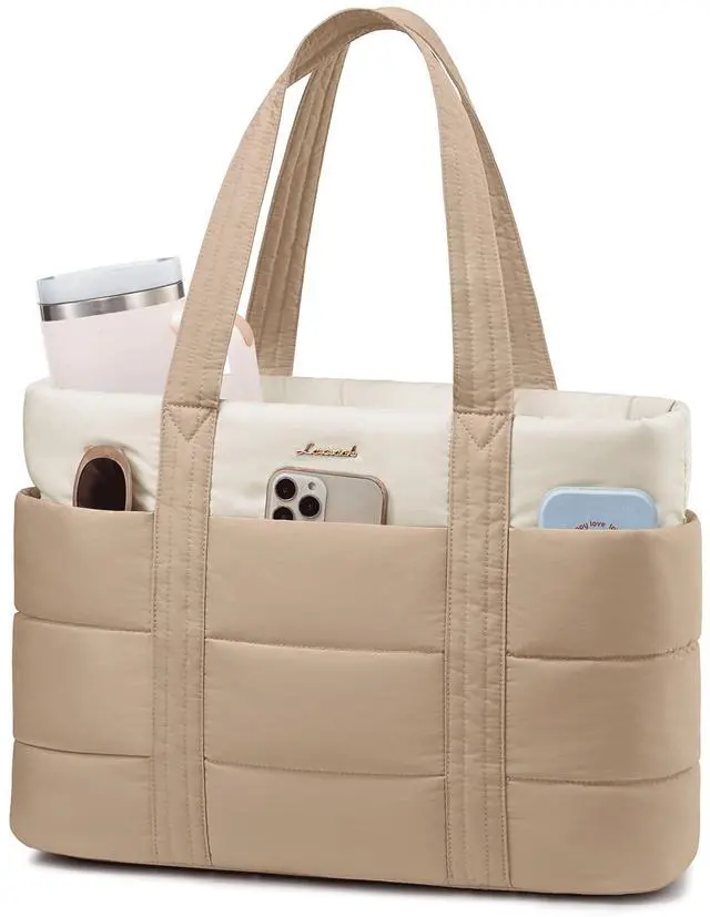 LOVEVOOK Tote Bag for Women, Large Puffer Work Tote Laptop Bag, Lightweight Travel Tote Bag with Zipper Gifts for Women