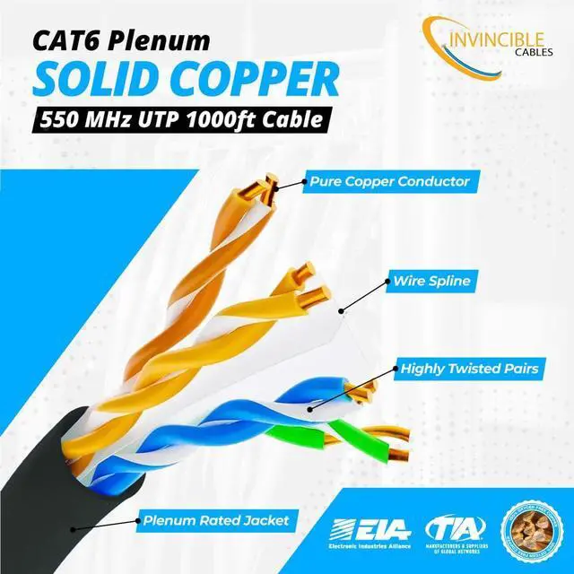 - :Our Cat6 plenum-rated Ethernet cable is constructed with 100% solid copper conductors for enhanced durability and conductivity. It ensures adherence to ANSI/TIA 568.2-D standards, is RoHS-3 compliant, and is backed by a FOREVER WARRANTY, providing you with peace of mind and a solid investment in your networking infrastructure.